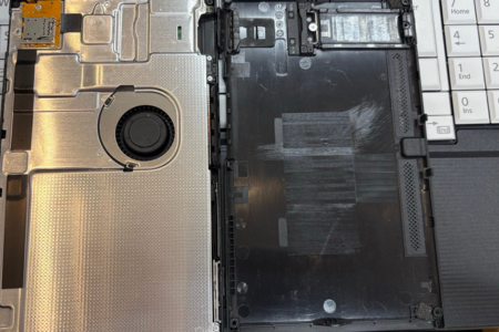 お持ち込みいただいた端末は、ゲームをしていると本体がかなり熱を持ちやすく、使用中に不安を感じる状態でした。